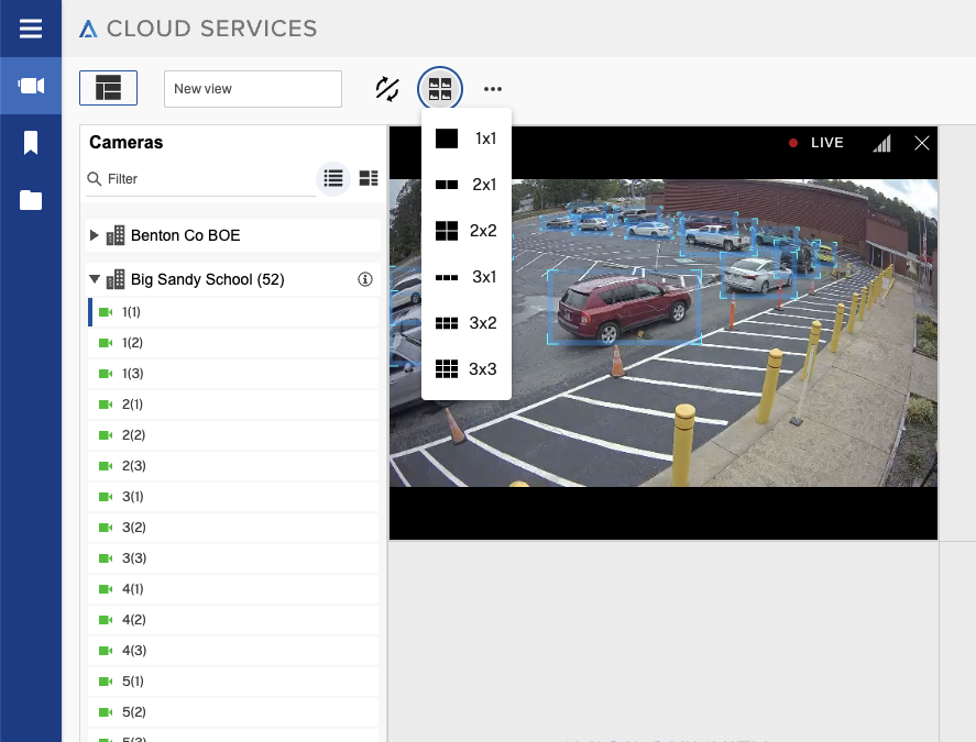 Click on the location, click and drag the camera in a blank space to the right. You can choose multiple sites/cameras to view at the same time. You can change your view from only 1 camera to 9 cameras.